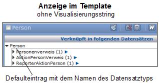 - Durch Eingabe eines selbstdefinierten Strings kann der Defaulteintrag (Name des Datensatztyps) im Template verändert werden