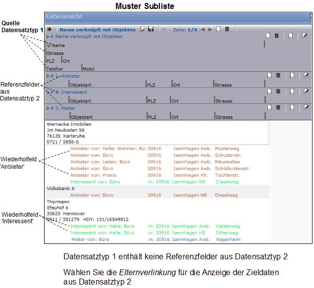 Wählen Sie immer dann die Sublistenfunktion, wenn Sie in einer Liste Daten aus fremden Datensatztypen anzeigen wollen.