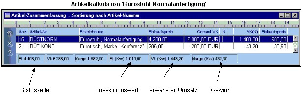← Arbeiten mit der Artikelübersicht